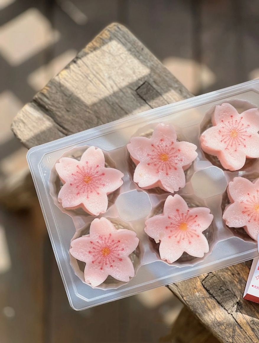 樱花造型的酒酿米糕,甜度不高带着淡淡的发酵香,配上果肉夹心,很合适春日的味道。和emoji一样可爱的花花糯糯三色团子,樱花、椰椰牛乳和抹茶青团三种口味,很有春天的feel。