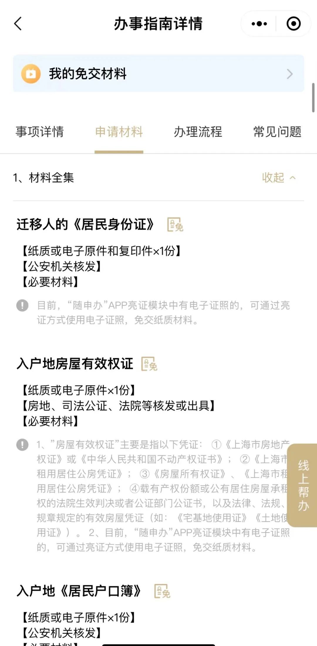 “随申办”APP“亮证”模块中有电子证照的,可通过亮证方式使用电子证照,当事人可免交纸质材料。