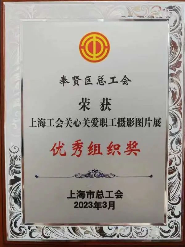 ▲上海工会关心关爱职工暨致敬最美劳动者摄影活动优秀组织奖