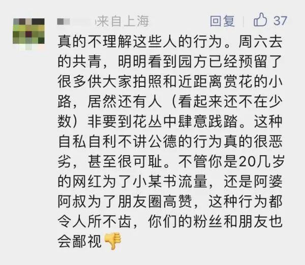 “看到花海被践踏非常心疼”