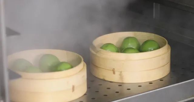 捏好之后,把青团放入蒸笼蒸12分钟左右,出笼后凉一会就可以吃啦!