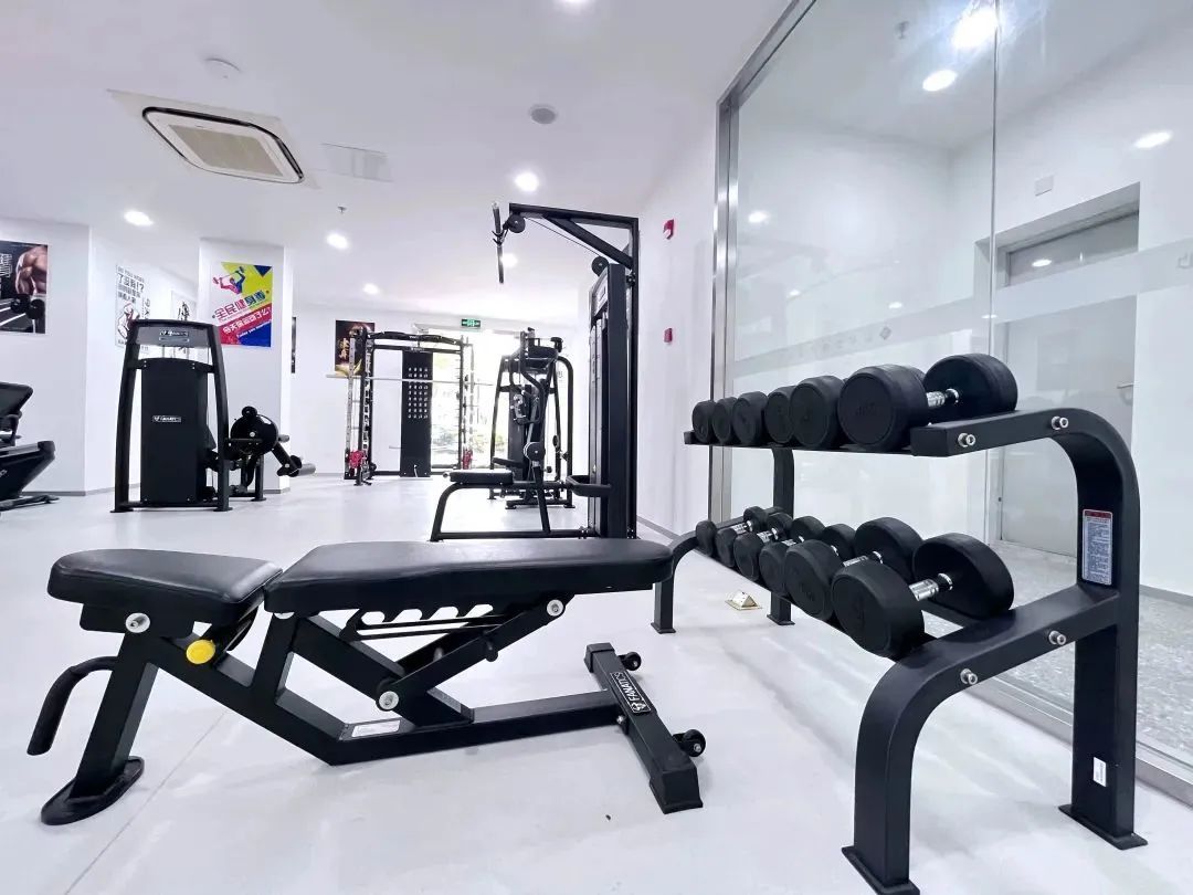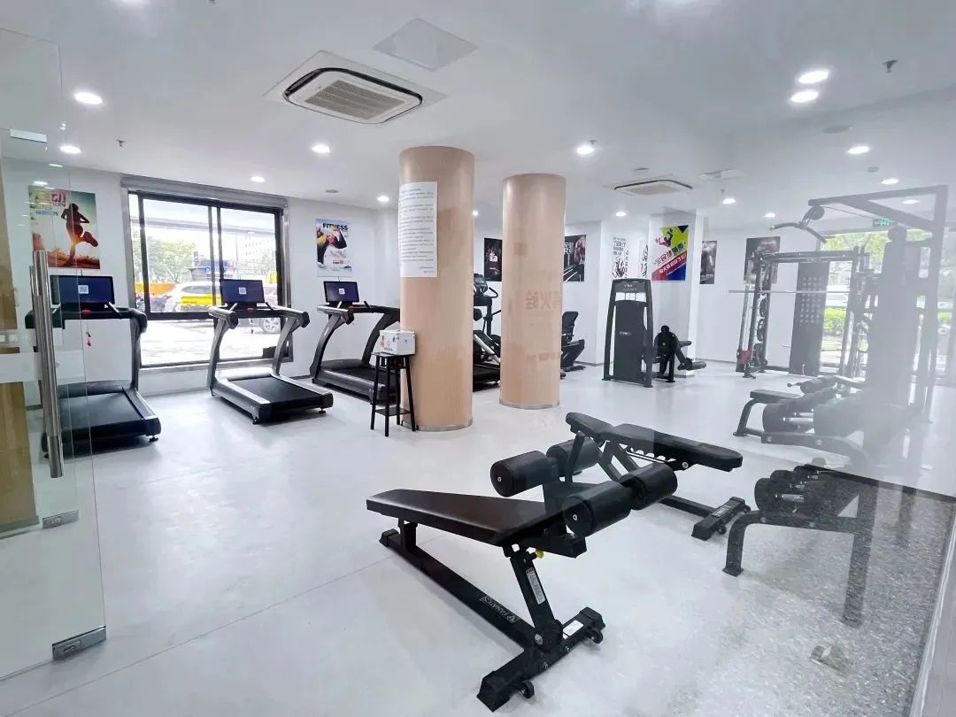 手机扫码即可进入,内部配备了智能化门禁系统、智能化有氧设备(跑步机、椭圆机、健身车),大型力量器械(单人站、综合训练器、哑铃、哑铃凳、仰卧板等)。