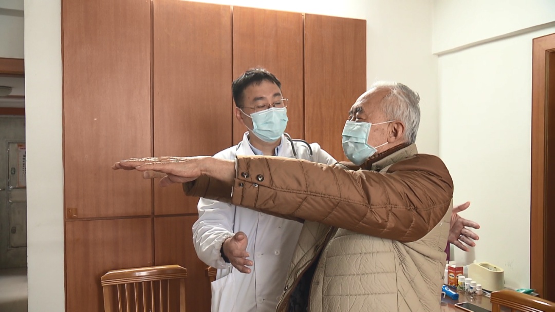 陈老伯平时很少出门,行动也确实不方便,走路有点不稳,医生每两周上门一次,他觉得挺方便的,他老伴年龄也很大了,照顾他也比较困难,我们的这项服务,为这些子女不在身边的老年人提供了便利。