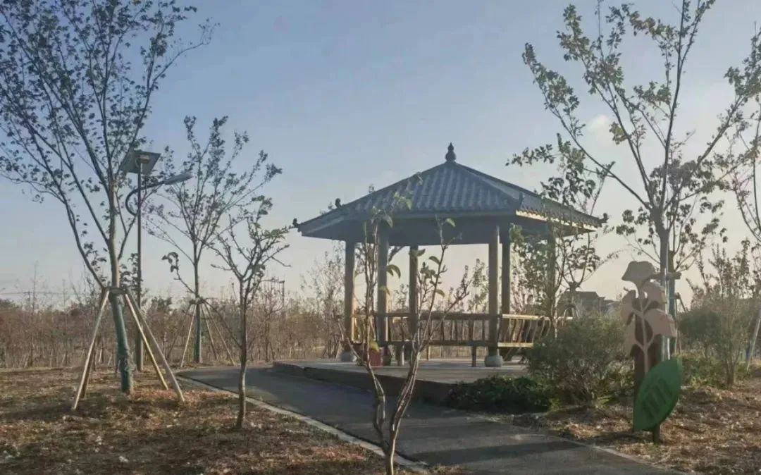 立民村乡村公园面积84.6亩,历经数月完成了疏伐、起挖、移植、补植等1649多株各类树木,包括桃树、梨树、榉树、女贞、桂花、香樟、榔榆等;种植广玉兰、金桂等乔木10余种500多株,腊梅、紫薇等花灌木及大花萱草、水生鸢尾等组成了3000多平方米地被。完工后,裸露黄土被繁茂的草地覆盖,灌木鲜花和造型别致的盆栽扮靓了公园环境,平坦宽阔的人行步道,配备齐全的健身器材,可供休闲的长椅石桌,遮风挡雨小凉亭……周边村民茶余饭后都爱到小公园转一转。目前公园还纳入了全市乡村公园名录。