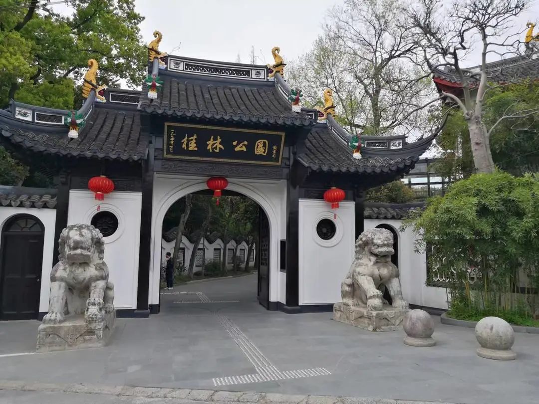 从南门进入桂林公园,两旁白砖黑瓦的中式风格映入眼帘,宛如一幅水墨画。窗台雕花整齐别致,整座园林的精雕细琢,从入口处便可窥得一隅。