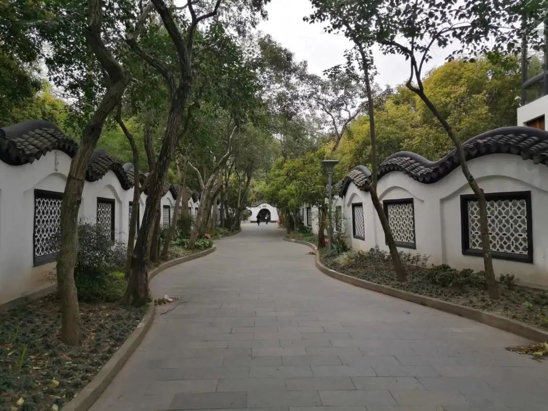 圆门院墙同样是黑白色调,将桂林公园分割出不同的区域,蜿蜒小路曲折回环,漫步其中,感受园林青翠雅致。