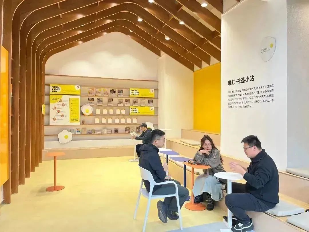 社区X空间的“瑞虹街区大地图”,标注着附近的美食、运动、亲子等配套设施,居民能持续标记自己的社区生活足迹,分享家门口的好去处。