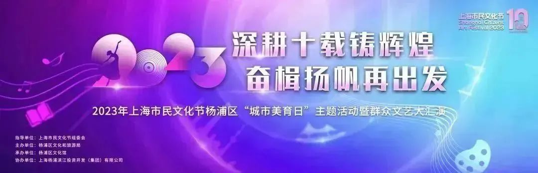 4月8日上午,杨浦滨江绿色之丘南侧广场将举办2023年上海市民文化节杨浦区“城市美育日”主题活动暨群众文艺大汇演,与市民共享杨浦群文十年的丰硕成果,开启2023杨浦的市民文化节。活动现场,将特别发布杨浦打造的“艺·趣文化生活节”品牌。