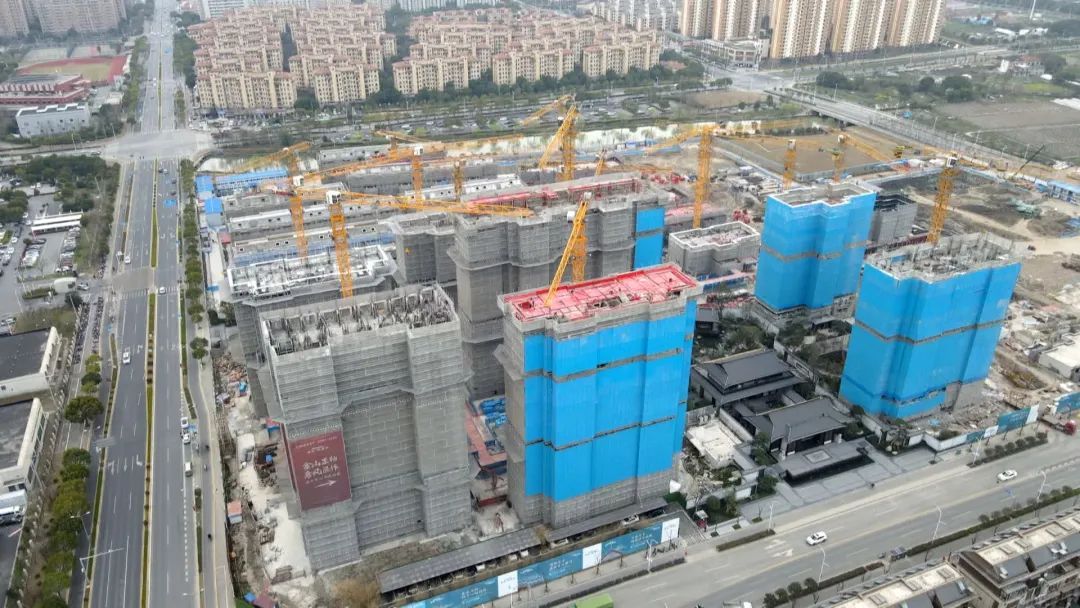 日前,在金山卫镇建发观唐府项目的施工现场,工人们正在紧张作业。各个建筑楼体的施工进度不一,部分建筑已经初具雏形。据介绍,该项目的保障性租赁住房目前已完成总进度的70%,预计今年6月底完工。