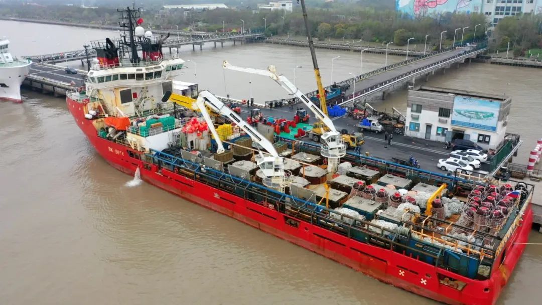 4月5日下午,满载152吨鲜活帝王蟹的俄罗斯籍“贝林”轮泊靠至上海长兴岛横沙国际渔港远洋码头。这是横沙渔港今年迎来的第8艘外籍渔船,也刷新了渔港自俄罗斯帝王蟹进口业务开通以来的单船运载最高记录。