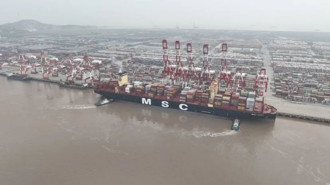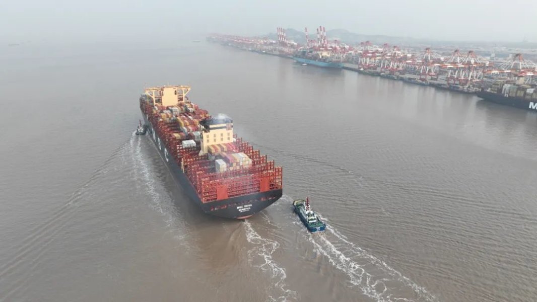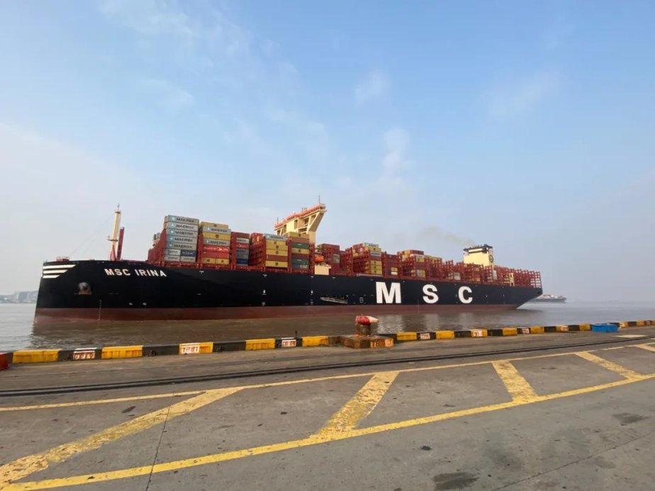 据了解,本次受检的 “地中海伊琳娜”(MSC IRINA)轮是地地道道的“中国制造”,拥有完全自主知识产权,该轮总长399.99米,型宽61.3米,最大载箱量为24346TEU,再度刷新上海洋山深水港靠泊大型集装箱轮的历史纪录,是名副其实的海上“巨无霸”和“带货王”。