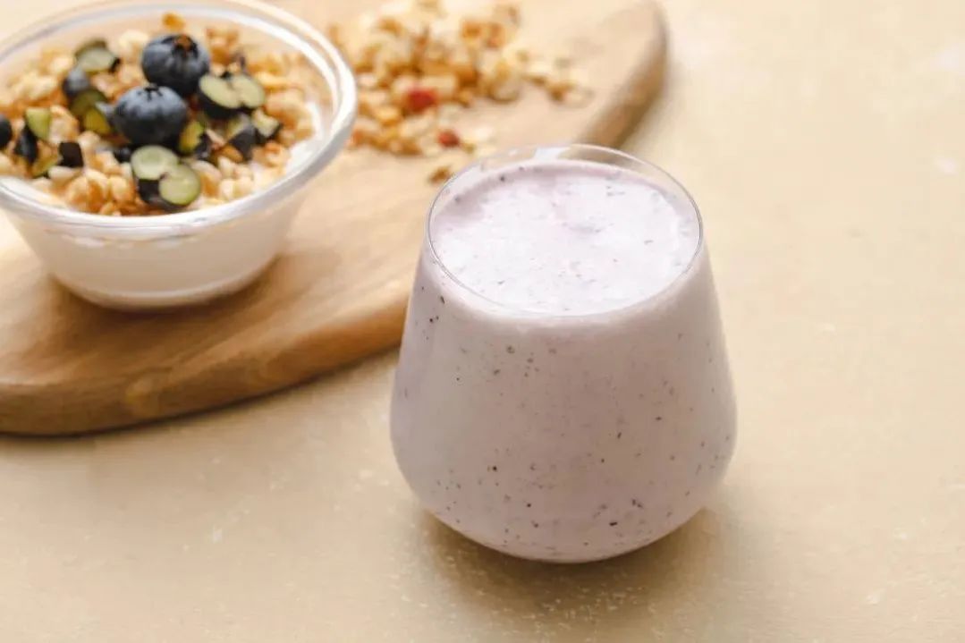 亦可用酸奶搭配蓝莓打出一杯蓝莓酸奶奶昔,酸奶的丝滑搭配蓝莓的酸甜和果粒口感,清新又快乐!