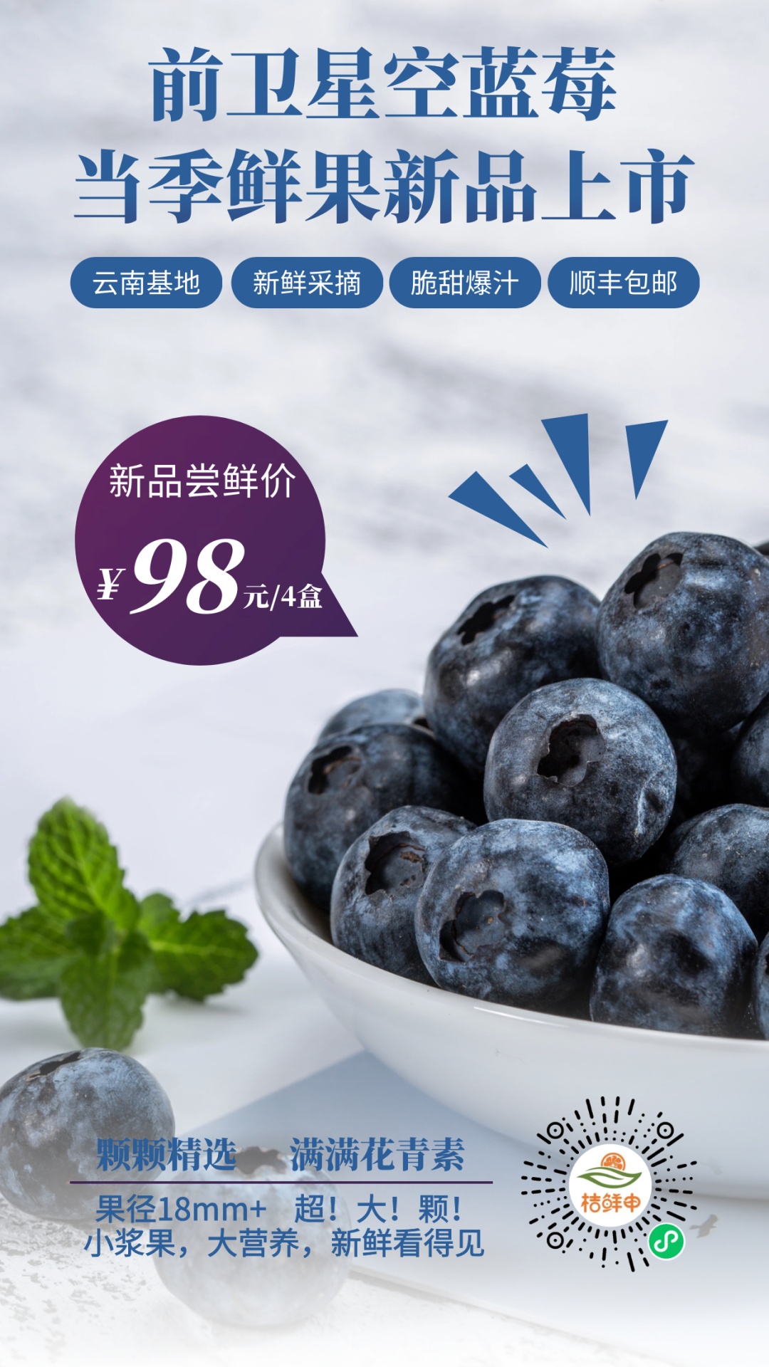 前卫星空蓝莓,简述三个标签:果粉完整,果肉细腻,口口爆浆!