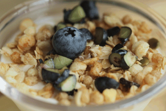 酸奶+麦片+蓝莓=清爽美味+好心情