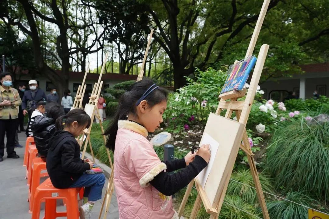 游园会还邀请了来自漕河泾街道的10位文明小画家来到现场,他们用画笔记录下了牡丹的绝美身姿,让人们从艺术的角度更深入地了解牡丹的文化内涵。别看小画师年纪小,笔下功夫却不含糊,一支水彩笔就能勾勒牡丹的花瓣,配色时还特别注重层次和递进,每一个小画家对于画牡丹还有自己的心得,有的注重花蕊的细节,有的则把侧重点放在层层叠叠的花瓣上。小画家们的作品不仅体现了牡丹的美丽,还表现了花卉文化和传统文化的融合,得到了游客们的一致好评。