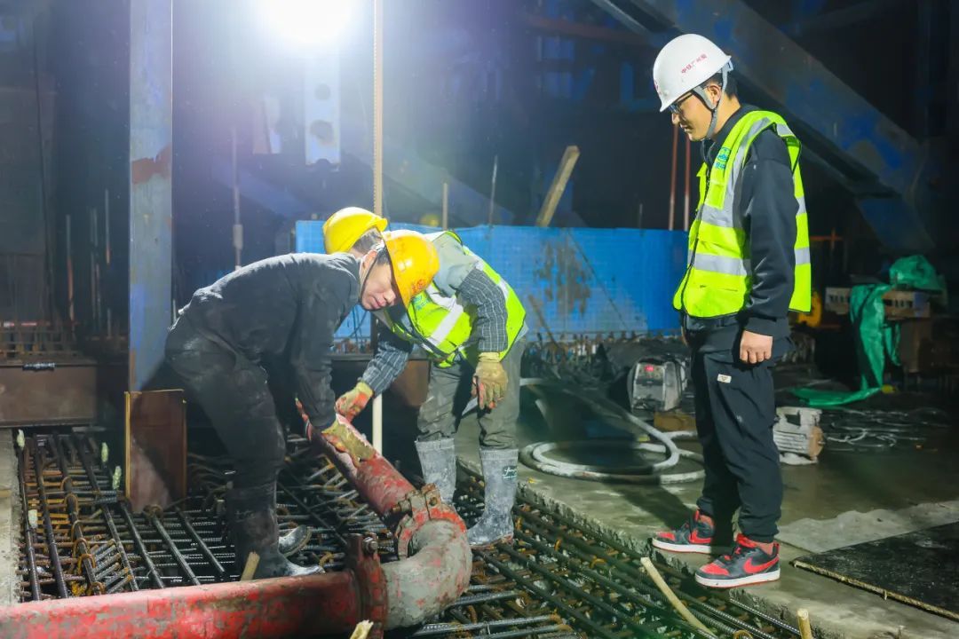 考虑到施工的连续梁下方车流量大,凌空作业安全风险高,技术标准要求高,施工作业空间小。项目施工方采用挂篮悬臂浇筑法施工,并多次召开施工方案研讨会,优化施工组织,超前进行施工准备,强化施工流程,并成立领导小组现场实行24小时轮流值班制度,健全安全保障体系,同时紧盯高空作业、支架施工、临边作业等施工内容,加强关键步骤过程控制和阶段性质量控制,确保安全到位、质量可控、顺利有序地完成合龙。