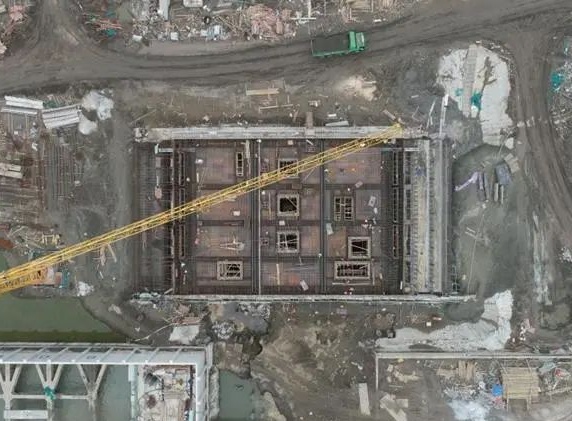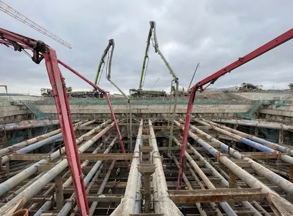 针对混凝土浇筑过程中可能发生的“因温差过大导致混凝土结构开裂”的问题,以及基坑内预埋管线复杂多样的施工状况,项目部从严格材料、细化方案、把控混凝土运输和输送等方面多措并举,优化混凝土配比、缩短混凝土运输及暴晒时间,控制混凝土浇筑温度不高于30摄氏度,不低于5摄氏度,混凝土内表温差不大于25摄氏度,有效控制温差,并派专人指挥,施工员旁站监督,对混凝土浇筑振捣、防渗防裂、养护施工和紧急处理等进行规范,全面把控混凝土浇筑质量。此次水泵房主体结构竣工,极大地鼓舞了全体参建人员的信心士气,为完成船坞全部主体结构的目标提供了坚强保障。