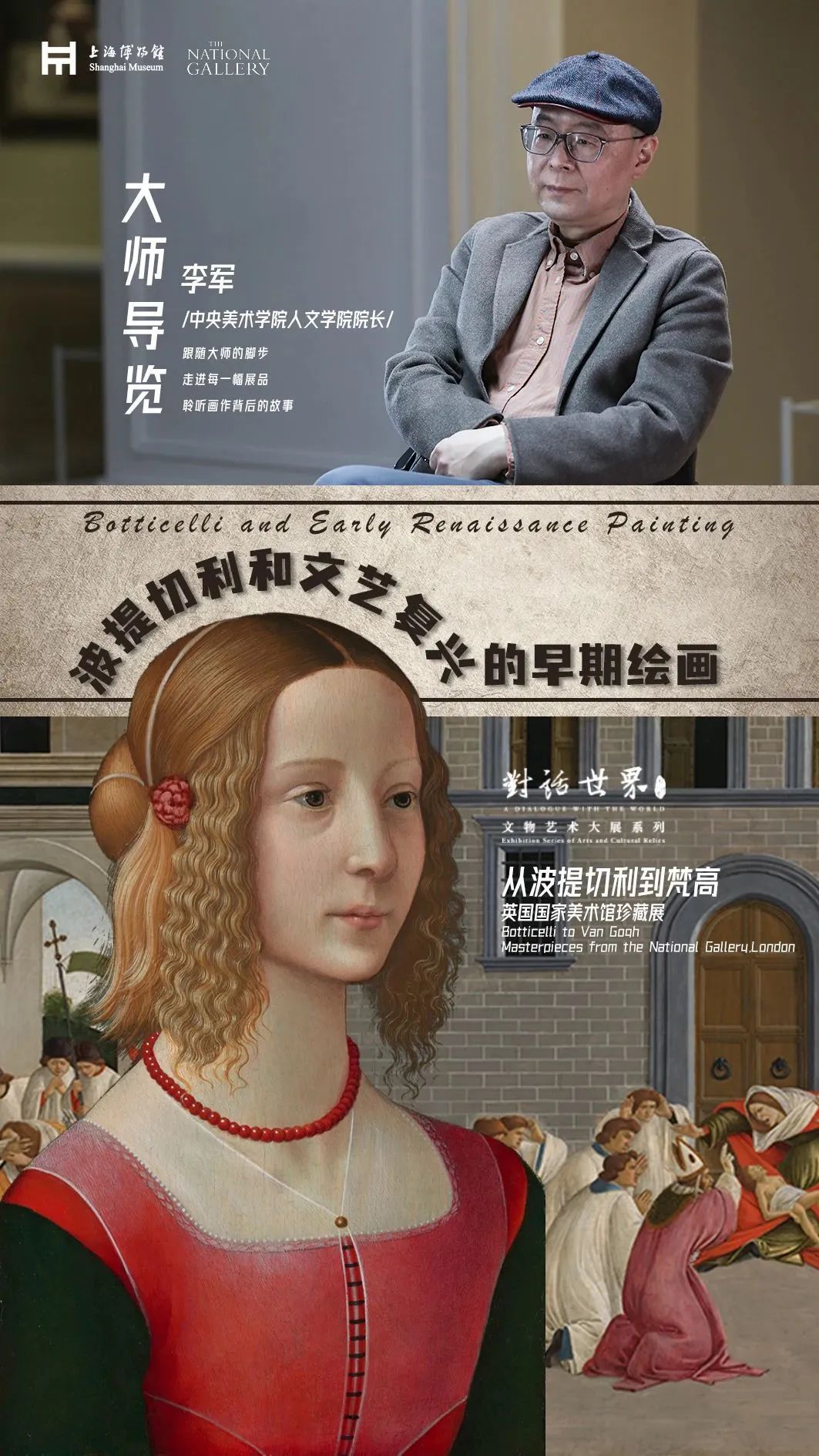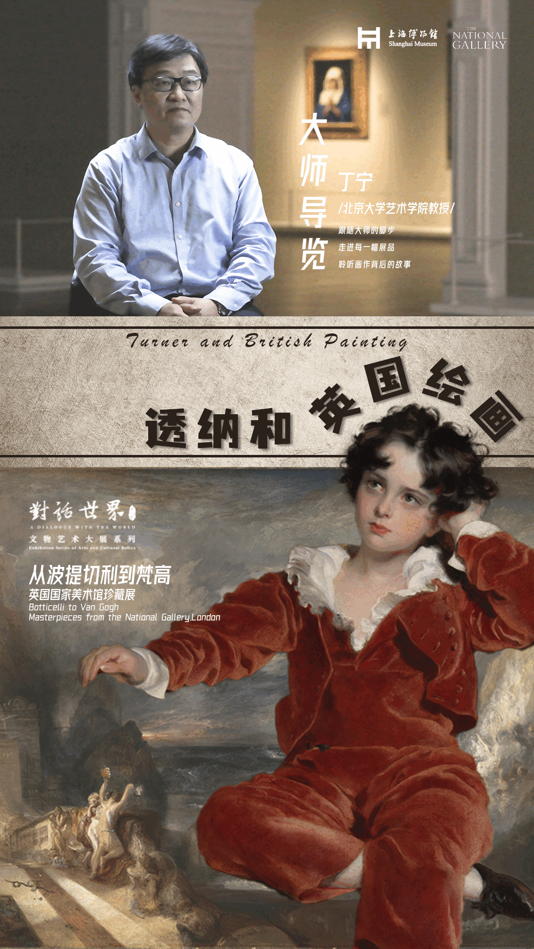 “从波提切利到梵高——英国国家美术馆珍藏展”自开幕以来,深受广大观众的喜爱。为继续推动社会大美育,距展览闭幕一个月之际,上海博物馆特为大家奉上精心制作的艺术导览系列专题片。在系列片中,观众将跟随八位我国知名艺术史学者、艺术家独一无二、富有洞见的解读,一同欣赏展览中那些熠熠生辉的艺术杰作和波澜壮阔的四百年欧洲绘画史,进一步解锁世界文明、对话人类心灵。