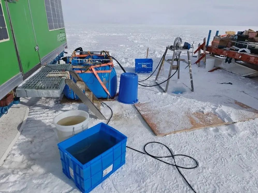 曹哲毅用热熔钻钻透冰层,研究表层和深层的温度变化