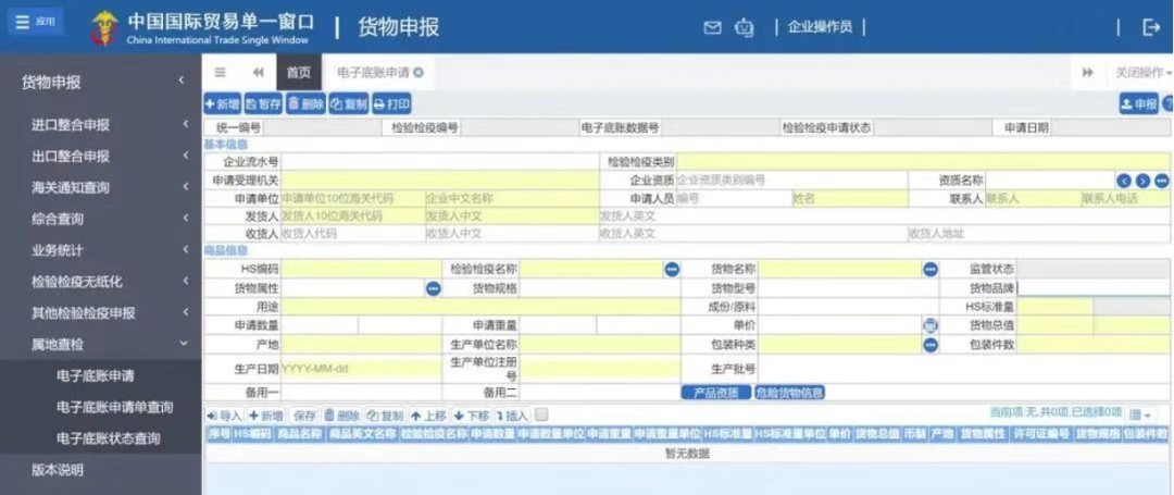 “电子底账申请”录入与之前使用的“出境检验检疫申请”基本一致,需重点关注如下: