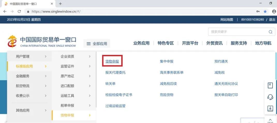 图2:中国国际贸易单一窗口货物申报界面