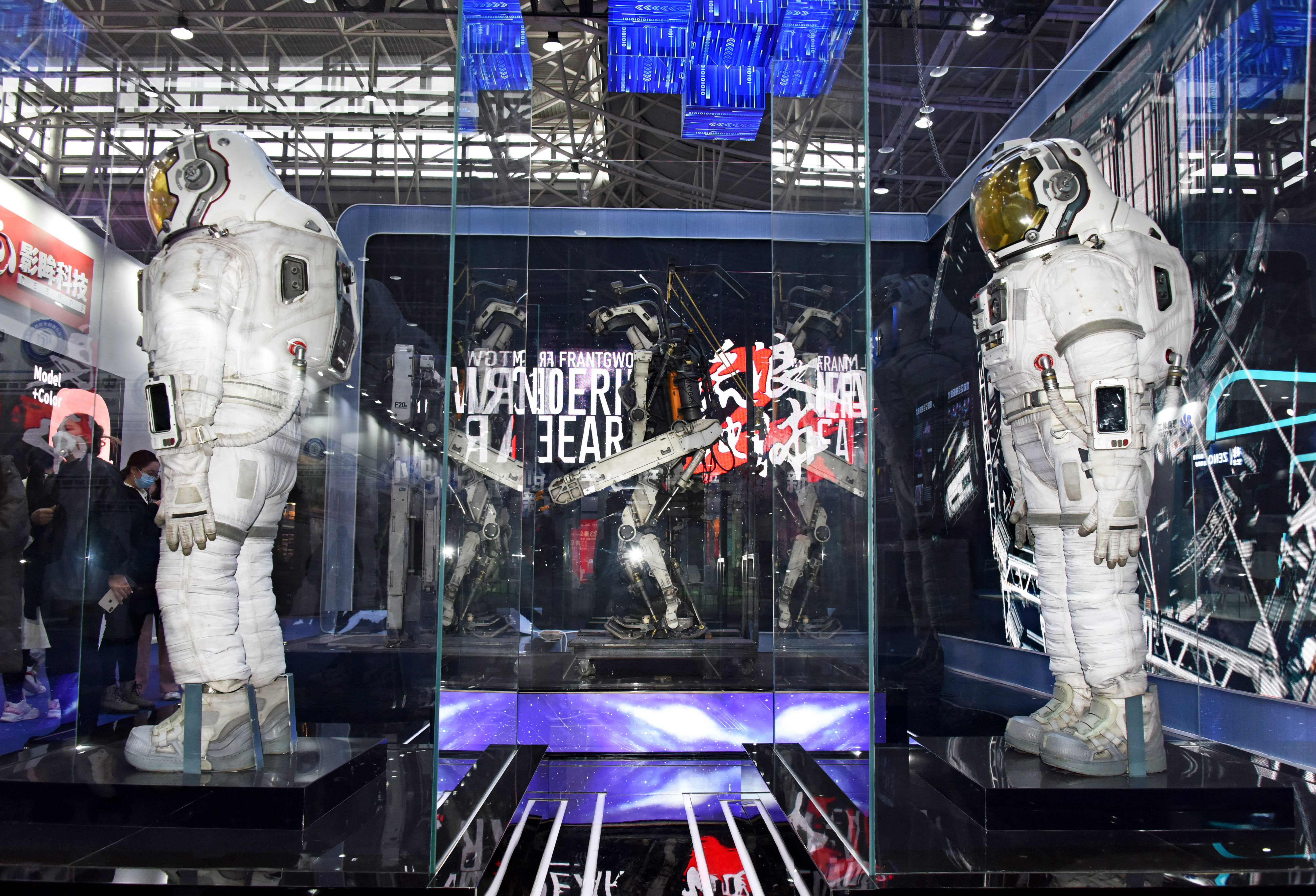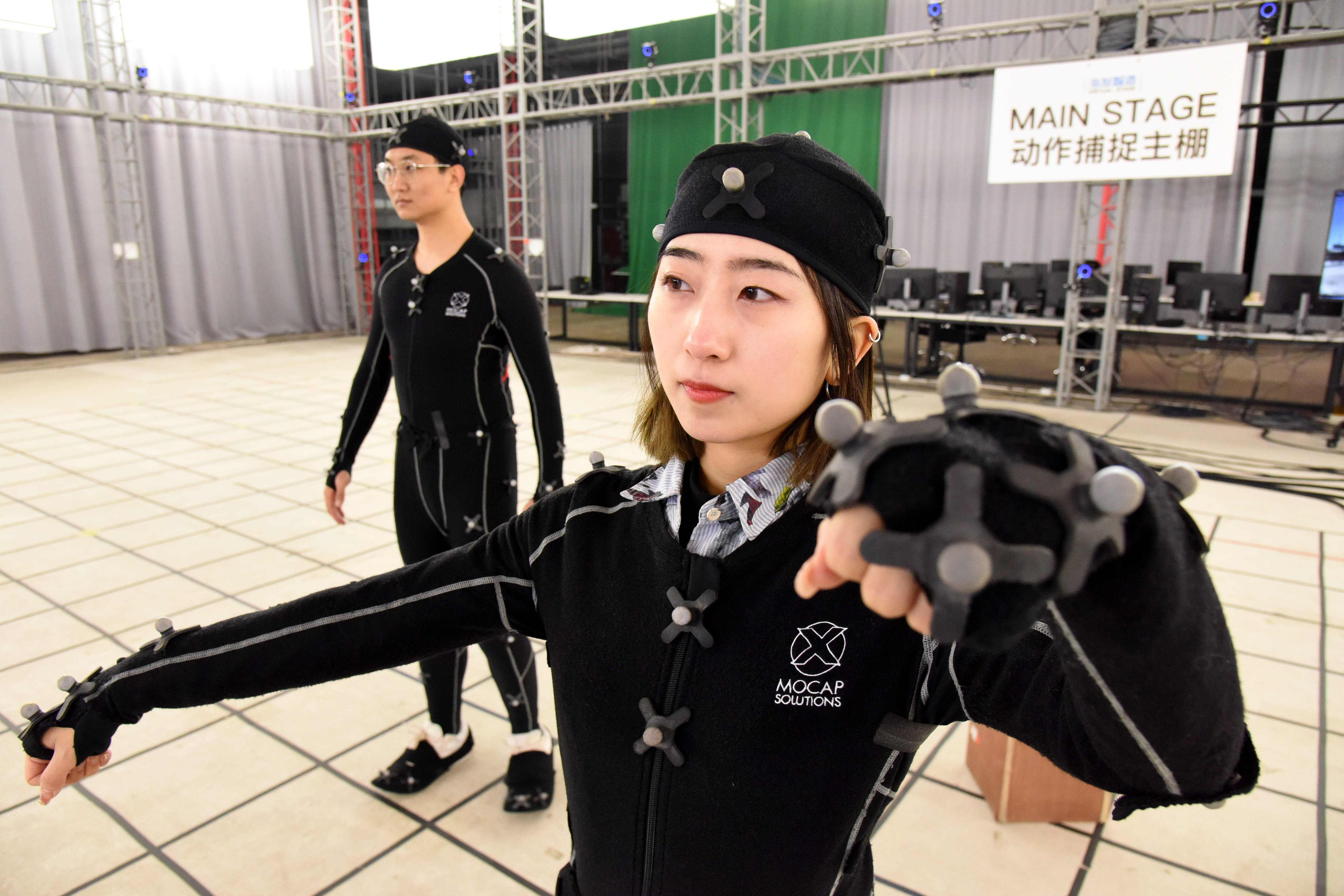 影片拍摄地青岛东方影都三维扫描工程师朱红昌介绍,《流浪地球2》是中国电影史上唯一一部实现了从虚拍棚剧本可视化预演到摄影棚拍摄的科幻片。在东方影都展位现场,记者看到,演员穿上带有标记点的动作捕捉服,摄像头能实时计算其运动信息,生成人物骨骼动画,通过虚拟化制作平台,剧组几乎同时就能看到“变身”后的演员和场景渲染在一起的画面,迅速代入科幻场景中。