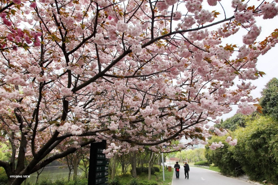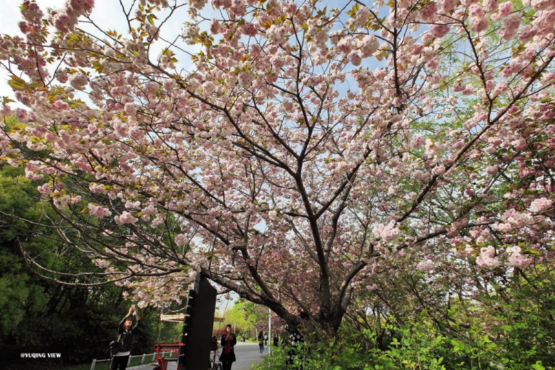 晚樱最佳观赏点:靠近六号门附近、樱花岛