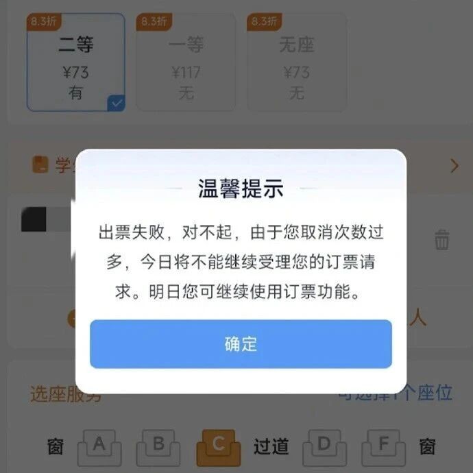 取消订单3次,当日无法购票!网友喊话“能不能取消限制”?12306回应↗