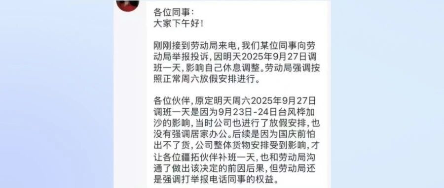 一公司因台风停工2天,要求员工周六补班1天被举报!一怒之下取消14天年假!最新进展→