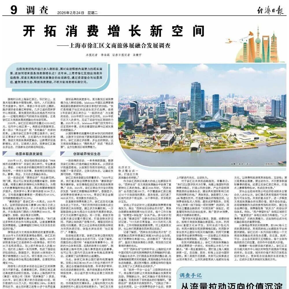 【智库声音】经济日报 | 郑世卿等:开拓消费增长新空间 ——上海市徐汇区文商旅体展融合发展调查