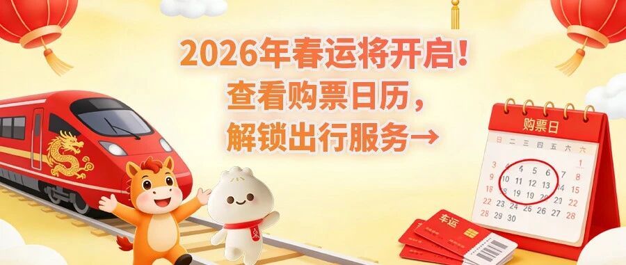 2026年春运将开启!查看购票日历,解锁出行服务→