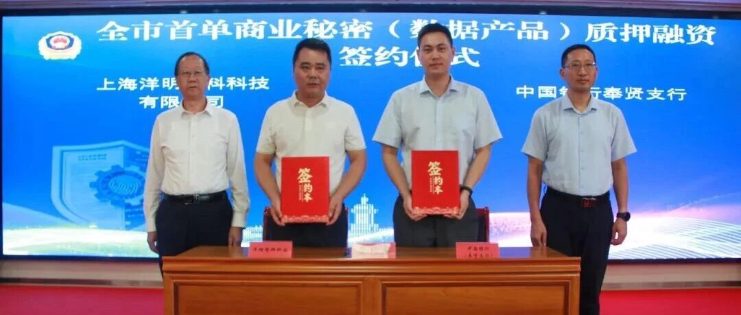 把商业秘密变为金融资产!上海首单5000万商业秘密(数据产品)质押融资在奉贤成功落地生效