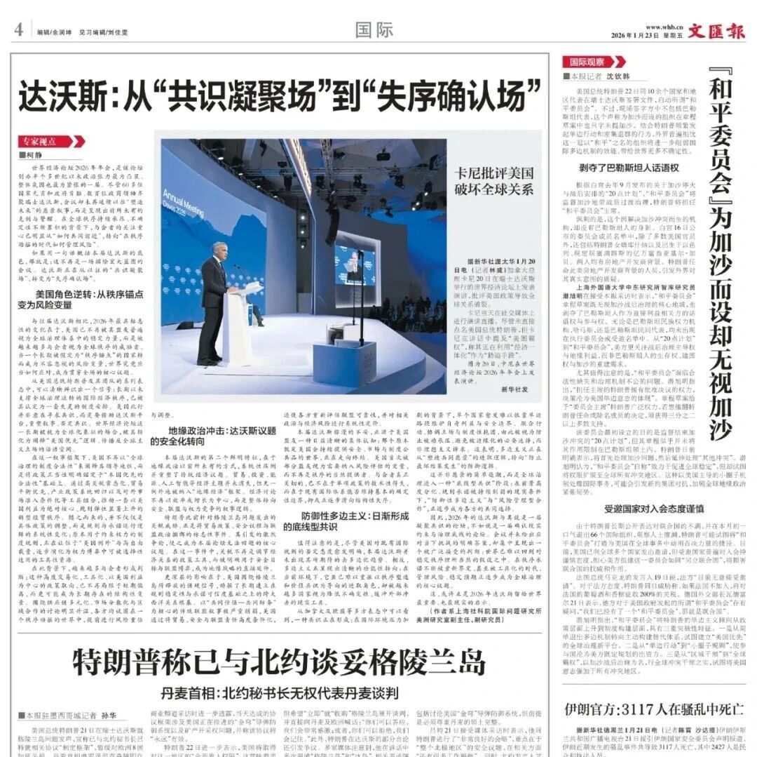 【智库声音】文汇报 | 柯静:达沃斯:从“共识凝聚场”到“失序确认场”