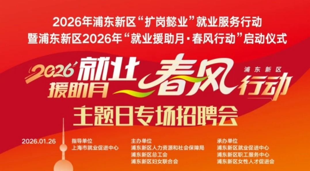 【活动预告】2026年浦东新区“扩岗懿业”就业服务行动暨浦东新区2026年“就业援助月·春风行动”主题日专场招聘会邀请您参加!