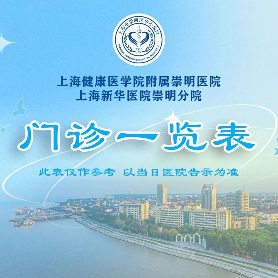 上海健康医学院附属崇明医院门诊安排(2026年3月16日-3月22日)
