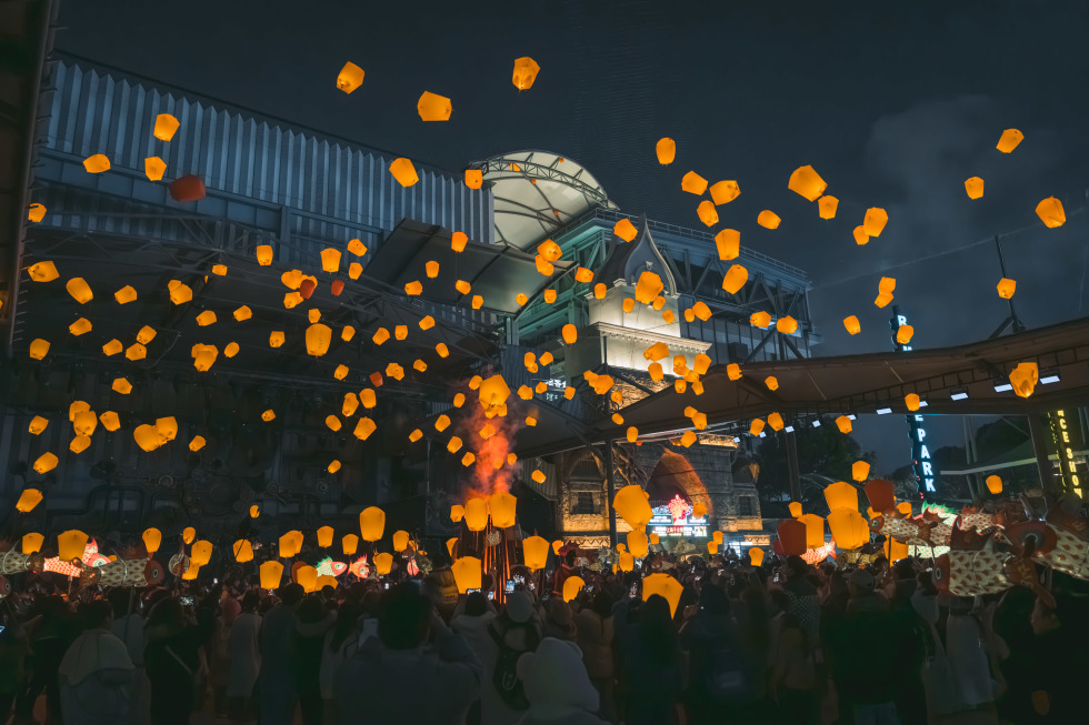 孔明灯“悬浮”成海,上海千古情景区别样新春再现中式浪漫