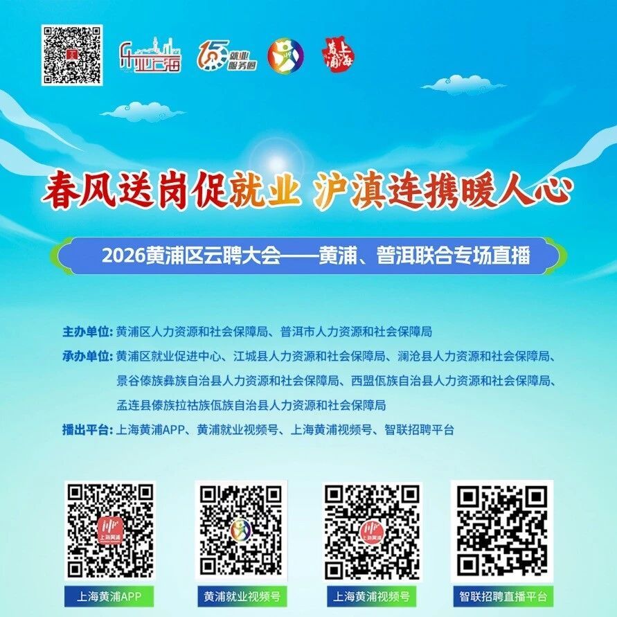 直播预告丨2026黄浦区云聘大会:黄浦、普洱联合专场
