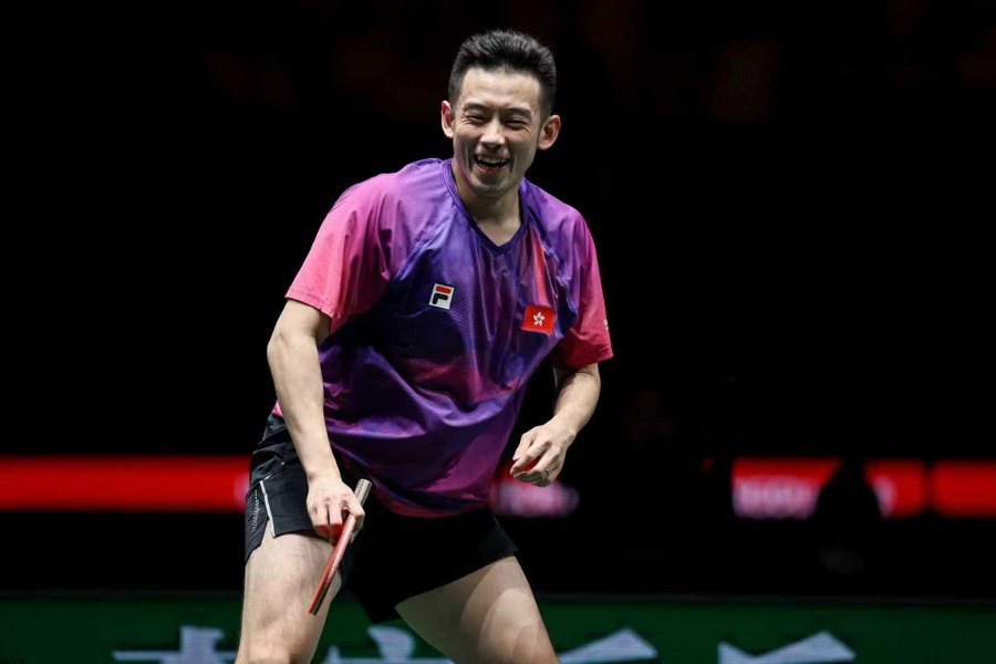 在混双拿下两分、女单拿下三分后,一哥黄镇廷上场,他在第三盘男单以2比1战胜埃及一哥奥玛·阿萨尔,又搭档陈灏桦在第四盘男双再赢一分,中国香港队率先凑够8分,淘汰埃及队晋级八强。