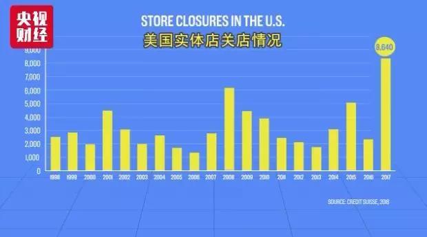 不仅仅是个别大型零售商。近三年我们已经看到了这一拨零售商破产的浪潮,2017年,美国关店的零售商店甚至创下历史新高。