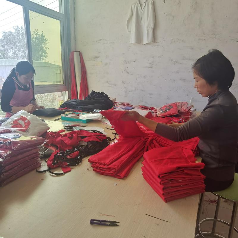丁楼村一家企业正在赶制儿童节表演服。