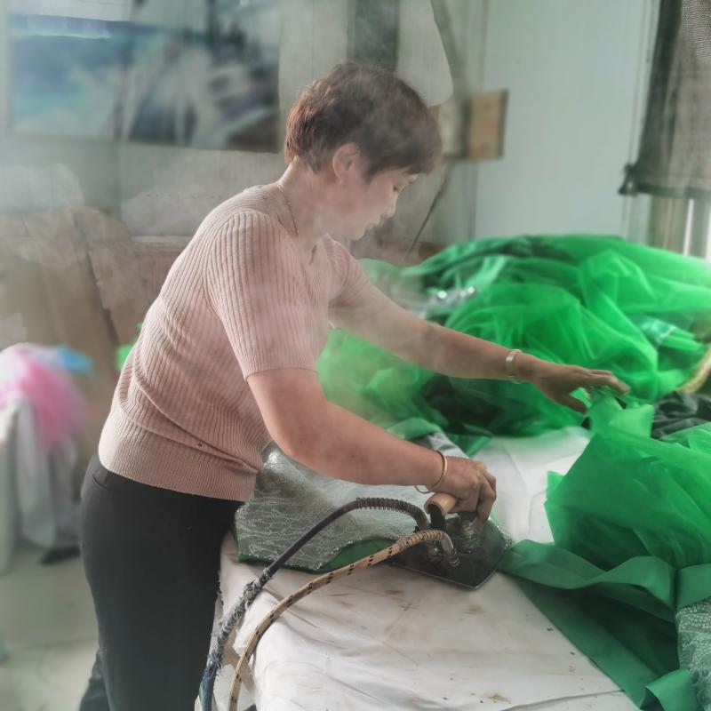 周爱华在销售旺季时忙着熨烫演出服。