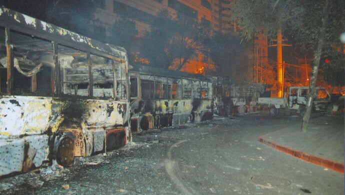 题图说明:乌鲁木齐“7·5”打砸抢烧严重暴力犯罪事件现场照片。