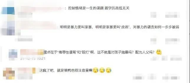 不少网友认为,不应将大人思想强加于孩子身上,呼吁给孩子一个快乐童年;也有网友评论称:“这不是虎爸,这是家暴,是语言加身体上的双重家暴,合理怀疑其有虐待行为。”