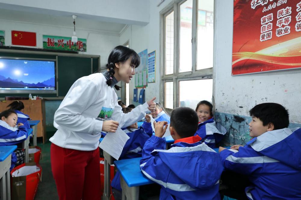 马场小学是一所六年制小学,现有学生72人,音乐教学资源相对匮乏,只能由其他学科的老师兼任教学工作。短短的几天里,黄龄教孩子们唱歌、跳舞,跟他们一起运动、学习。她还为孩子们准备了巧克力、杯子、牙膏、牙刷等零食和生活物资,公益合作伙伴也特别根据全校师生的尺码量身订制了100套全新的秋冬加绒款校服。