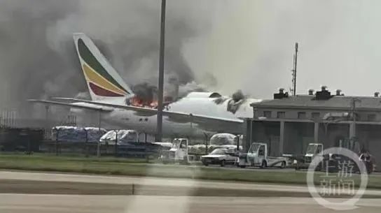 ▲燃烧中的埃塞航货机。 图片来源/央视新闻