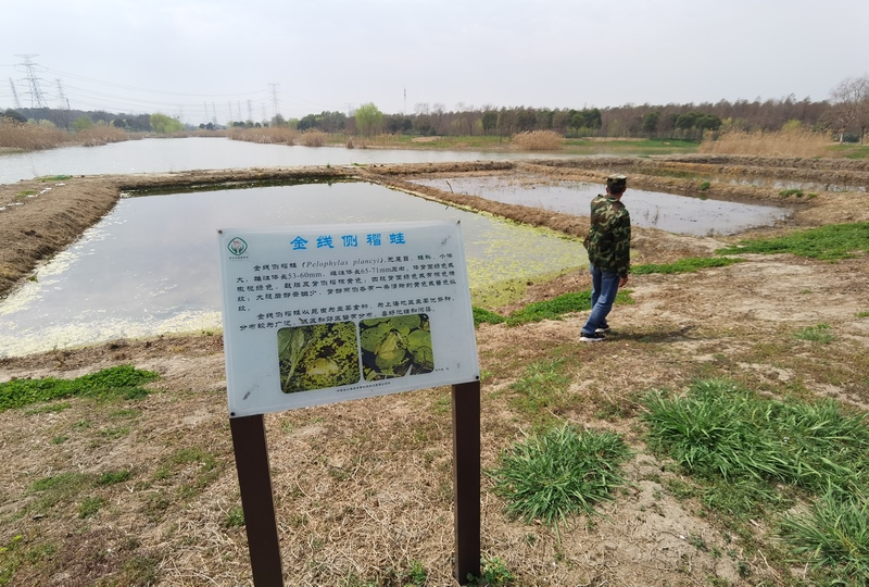 “很多年前是荒地,逐步改造成青蛙、蟾蜍等野生动物的栖息地,2015年又进行了一次改造,分成环境教育区、蛙类水森林区、农业蔬菜保护区、水雉保护区、水生植物隔离区等5个区域。”朱雪永指着蛙类水森林区靠近入口的4个池塘说,这里每年2月就热闹起来,先是蟾蜍下卵,到了5月、6月,青蛙的后代开始明显变多。