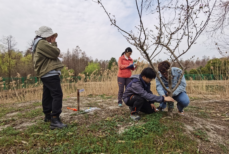 记者采访时,华东师范大学的学生正在维护两周前放置的监测设备 陈玺撼 摄