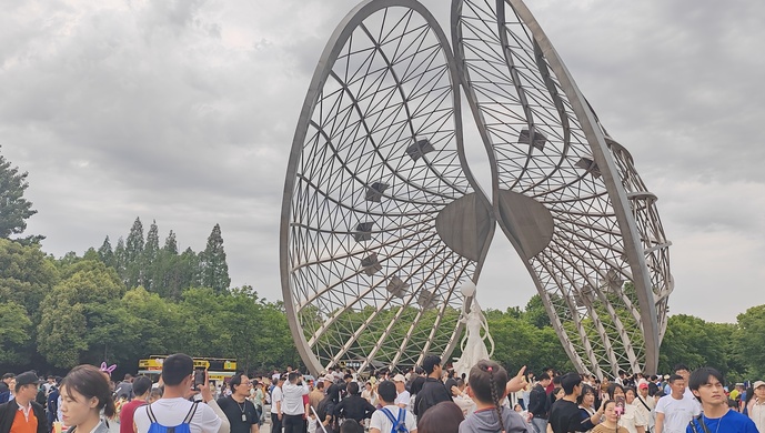 题图:2023年5月2日,安徽蚌埠,游客在蚌珠迎宾(桑酒公主)雕塑下拍照游玩未经正式授权严禁转载本文,侵权必究