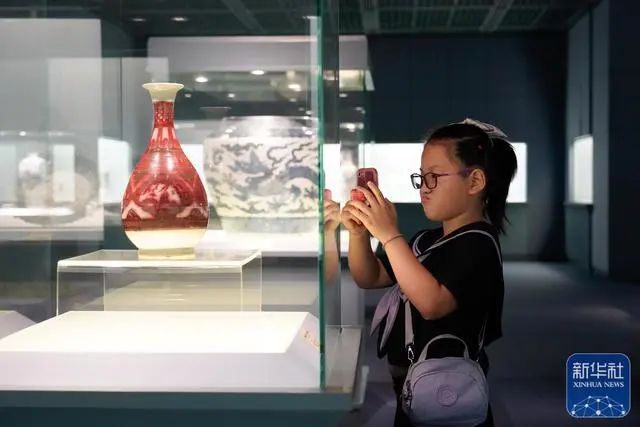 7月14日晚,小朋友在上海博物馆的中国古代陶瓷馆观看展品。新华社发(李心怡摄 图文无关)