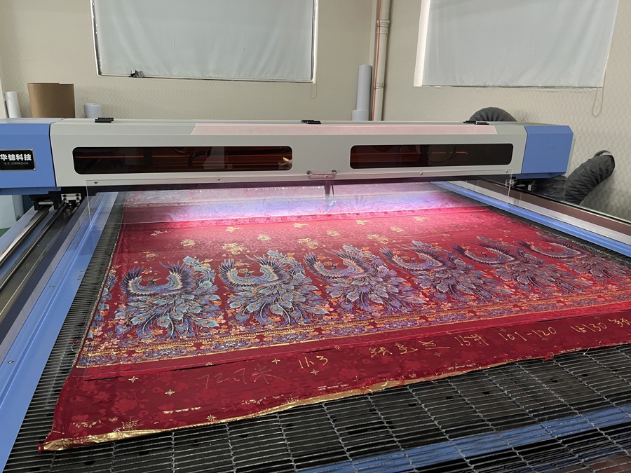 提花,是纺织物以经线、纬线交错组成凹凸花纹,也是我国一种非常古老的织造技术。由于技术复杂,即使用上1分钟300梭的提花机,有提花图案的部分要3分钟才能织出1厘米。不过,如今许村镇有100多家厂商在从事马面裙和新中式服装面料的生产,日产布料能达到3万余米,可制成近7000条马面裙。